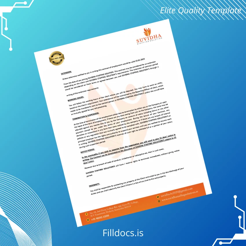 Don’t compromise on professionalism or consume extra time crafting employment letters manually. Opt for the India Suvidha Employment Verification Letter Template in Word and PDF, a fillable solution that saves time, reduces errors, and ensures compliance. Click now to purchase and start creating polished employment verification documents with confidence.