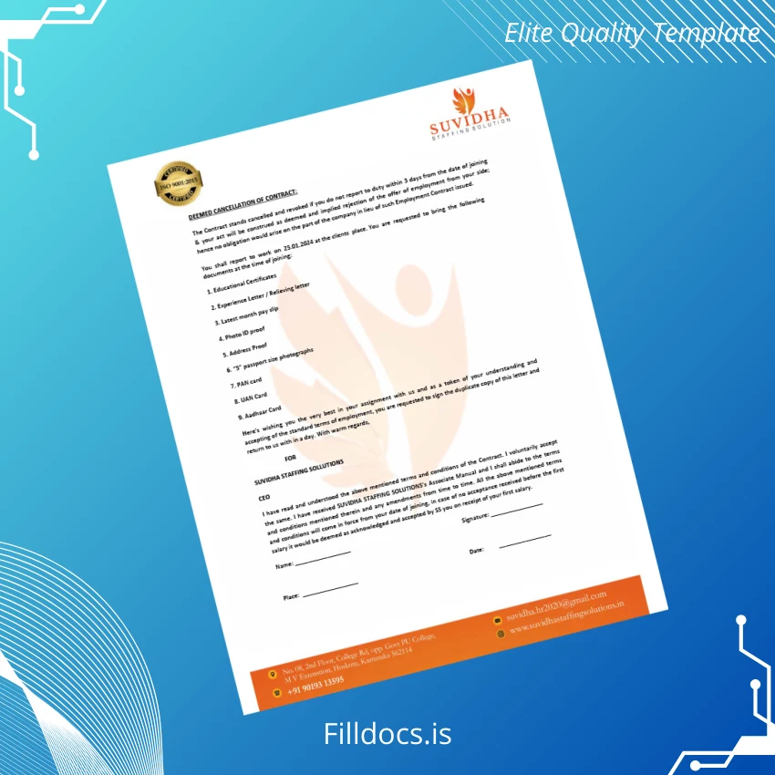 Ensure your employment details are clearly and professionally presented with the India Suvidha Employment Verification Letter Template available in editable Word and PDF formats. This fillable template offers a seamless solution for HR professionals and employees alike who need an efficient way to generate accurate proof of employment documents without the hassle of starting from scratch.