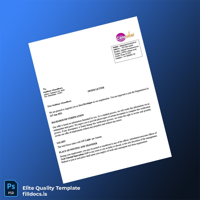 Be the first to review “Fillable India Tech Celestial Innovations LLP Employment Verification Letter Template – Word/PDF 3 page”