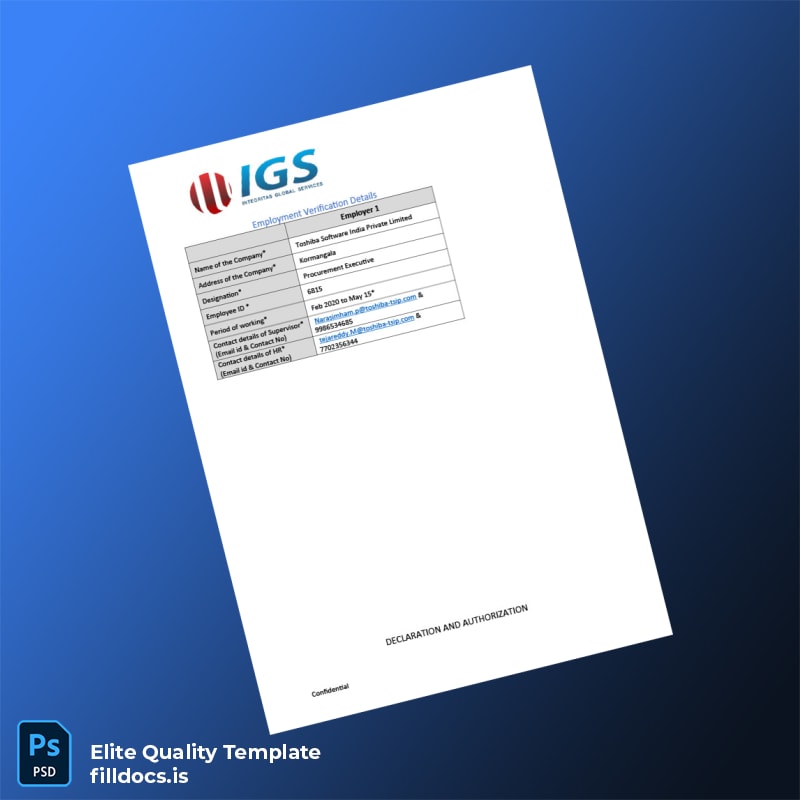 The Fillable India Toshiba Software India Private Limited Employment Verification Letter Template in Word and PDF formats is designed to simplify one of the most essential HR tasks — confirming an employee’s official job status. Whether you need to verify employment swiftly for credit applications, government records, or new job opportunities, this document ensures accuracy and professionalism.