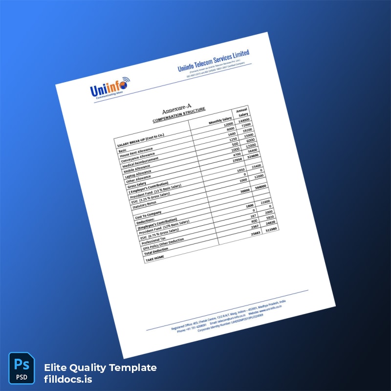 Fillable India Uniinfo Telecom Services Ltd Employment Verification Letter Template – Word/PDF 4 page