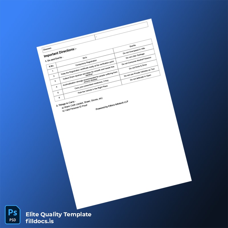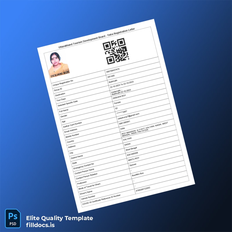 Don’t let tedious paperwork slow down your business growth. Equip yourself with our editable registration certificate template to ensure accuracy and professionalism in all your registration documents. Download your India UTDB Yatra Registration Letter Template today and experience the convenience of a fillable, customizable, and instantly accessible registration certificate.