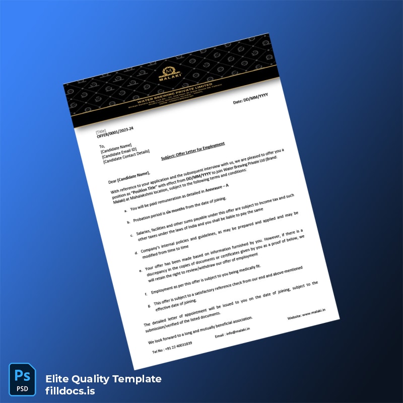 Ensure a professional and reliable way to confirm employment status with the India Water Brewing Private Limited Employment Verification Letter Template – Word/PDF. Designed for HR professionals, managers, and administrative staff worldwide, this fillable template combines convenience with comprehensive customization to fulfill verification needs swiftly.