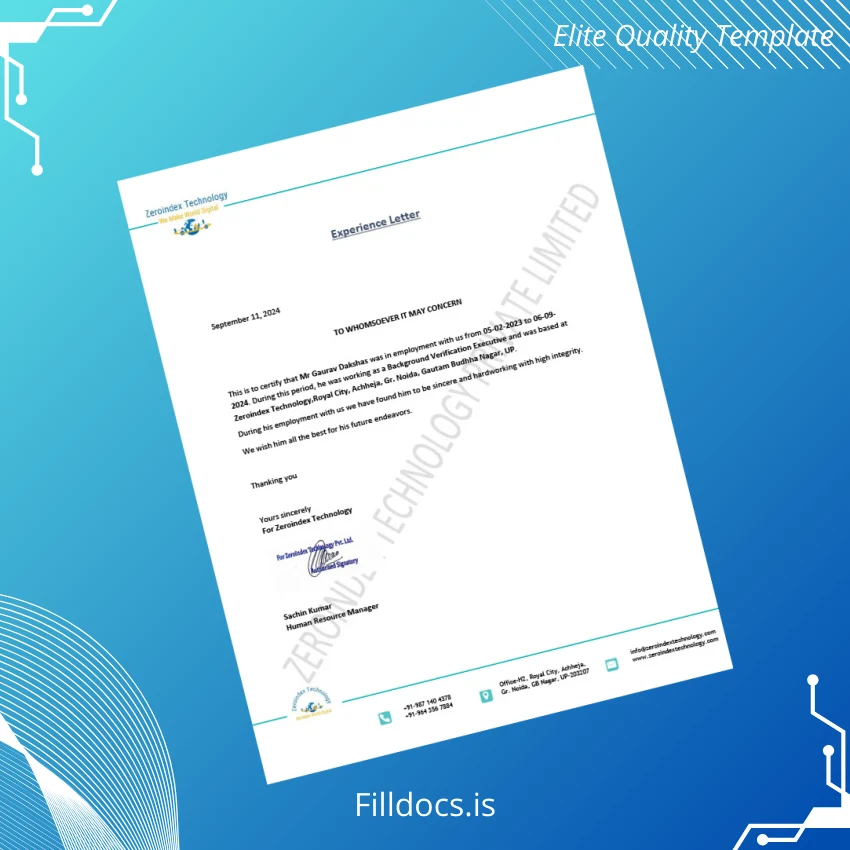 Empower your team with a dependable and streamlined employment verification letter solution. Purchase the Fillable India Zeroinedex Technology Employment Verification Letter Template in Word and PDF formats today to ensure your documentation is always prepared, professional, and precise. Don’t let verification delays impact your business — create your document instantly and with complete confidence.