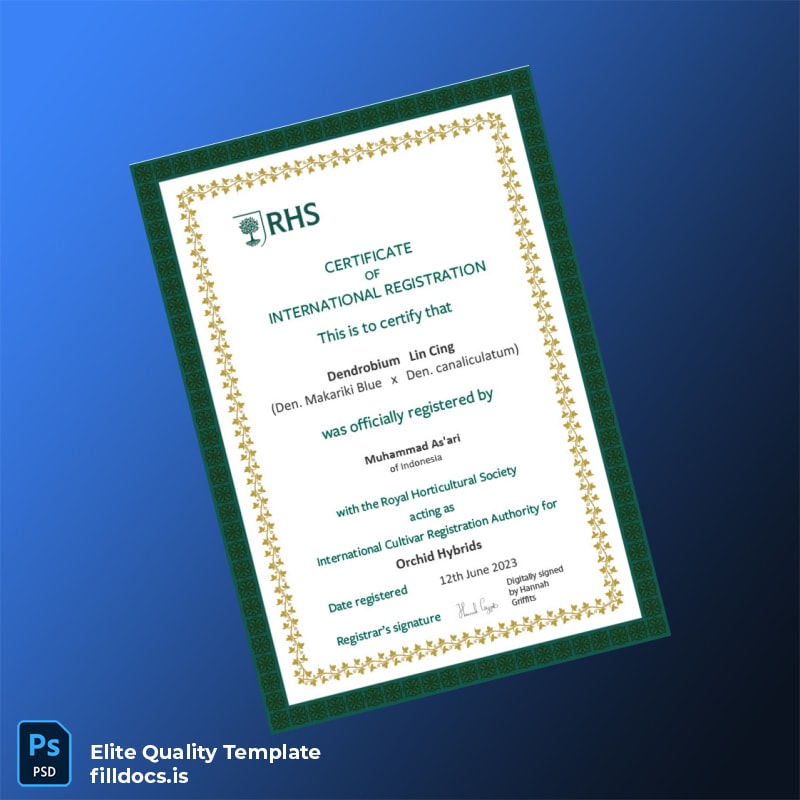 Discover the Indonesia Royal Horticultural Society Certificate of International Registration Template