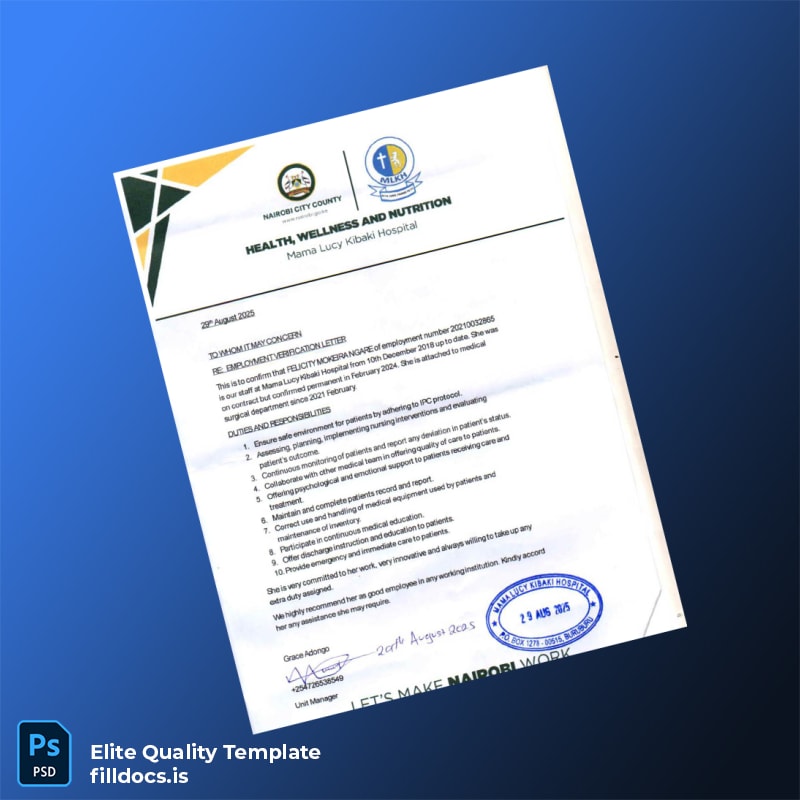 Streamline Your Employment Verification Process with Kenya Mama Lucy Kibaki Hospital Template