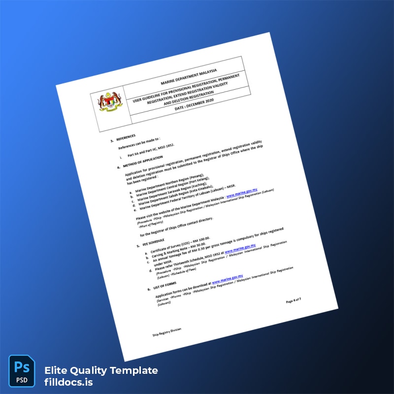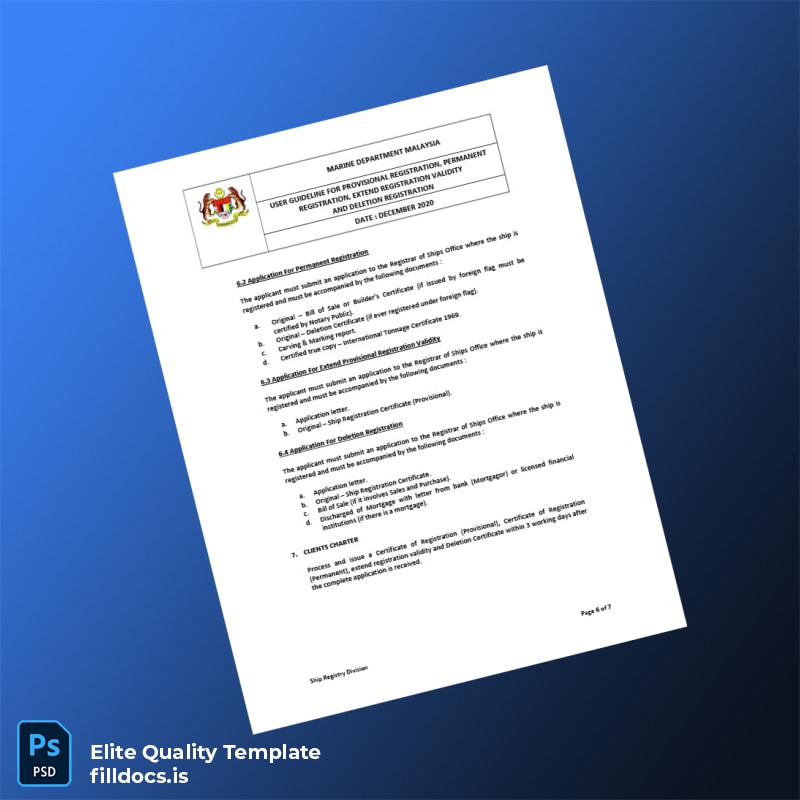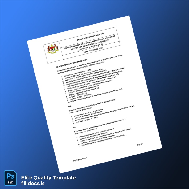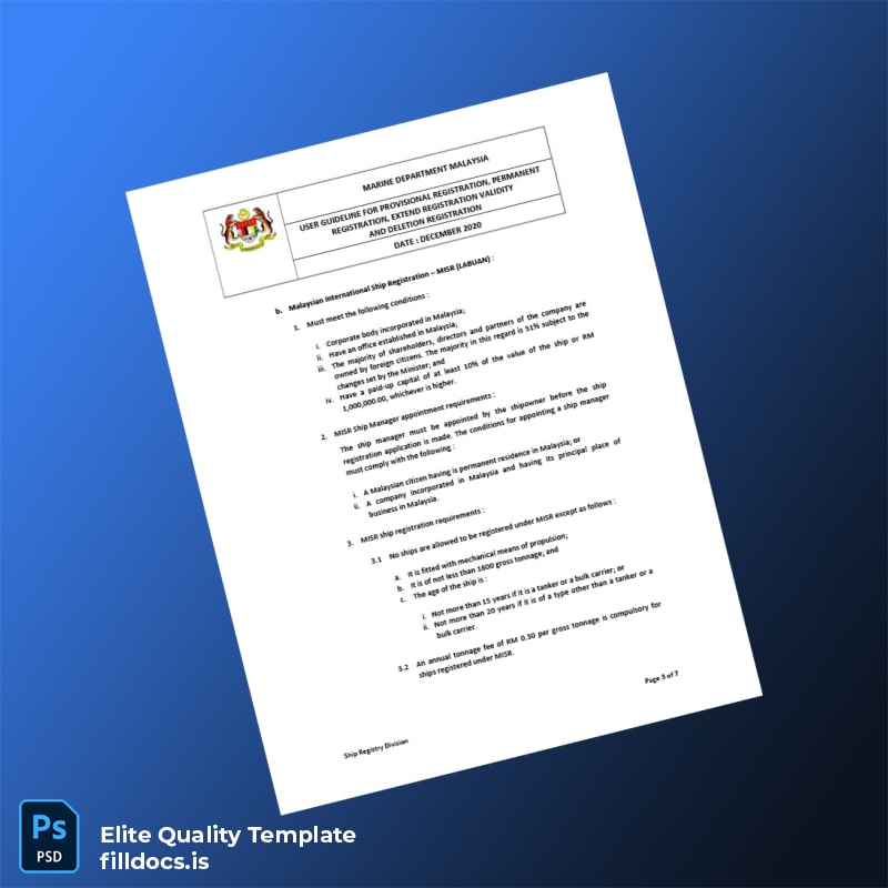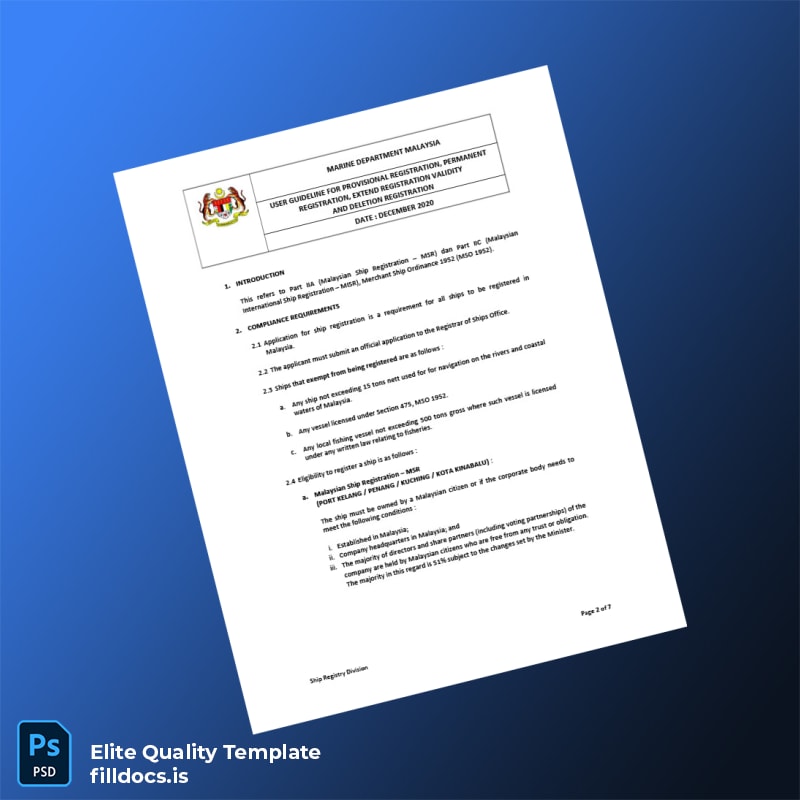 Fillable Malaysia Marine Department User Guideline for Ship Registration Template – Word/PDF 7 page