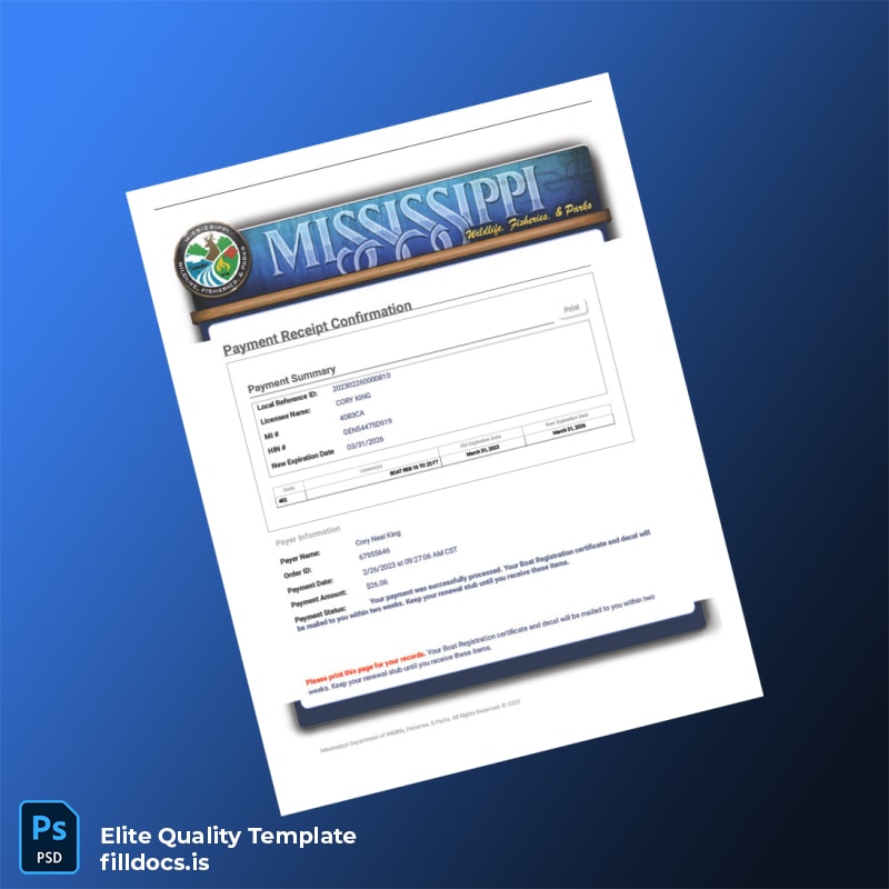Streamline Your Boat Registration with the Fillable Mississippi Department of Wildlife Fisheries and Parks Boat Registration Confirmation Template
