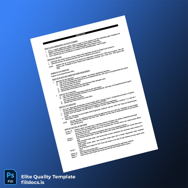 Fillable Nepal Inland Revenue Department PAN Registration Certificate Template – Word/PDF 3 page