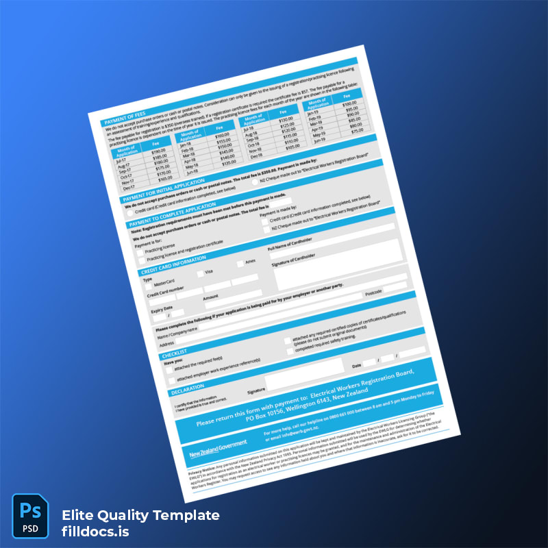 Fillable New Zealand Electrical Workers Registration Board Practising Licence Application Template – Word/PDF 2 page