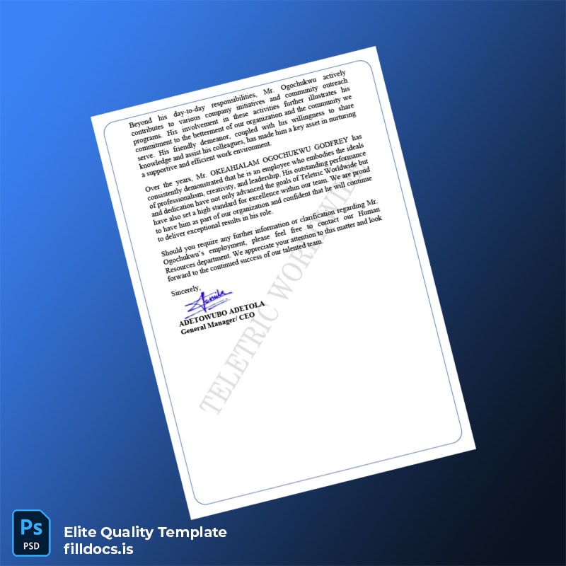 Stop struggling with generic, non-editable documents or unreliable sources. Empower your professional endeavors with the Nigeria Teletric Worldwide Employment Verification Letter Template, a fully customizable, fillable resource crafted to meet your exact needs. Download now and gain peace of mind knowing your employment verification is clear, credible, and ready when you are.