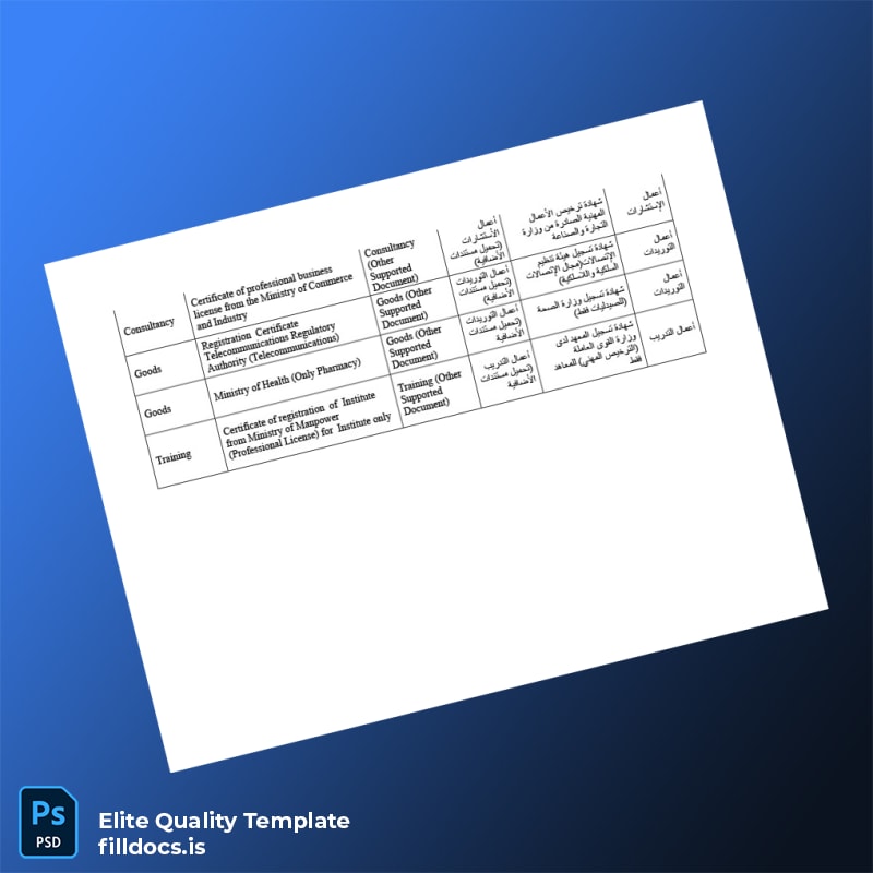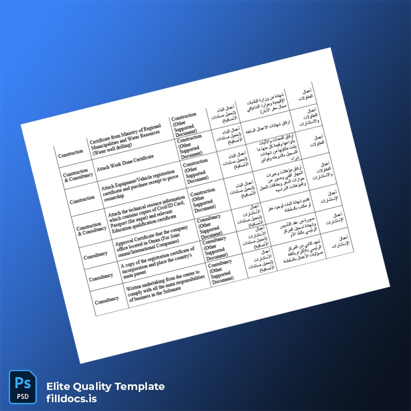 Don’t let vendor registration hurdles delay your business operations. Invest in this ready-made, fillable Oman Ministry of Commerce and Economy Vendor Registration Certificates List Template for Word and PDF today. Simplify your documentation process, ensure regulatory compliance, and maintain professional standards with ease.