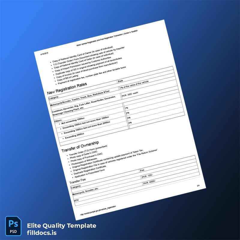 Don’t let administrative complications slow down your vehicle registration processes. Download the Fillable Pakistan Excise and Taxation Authority Motor Vehicle Registration Certificate Word and PDF Template now and transform how you handle vital certification needs. Reliable, editable, and ready to use — your trusted partner for seamless vehicle document management.