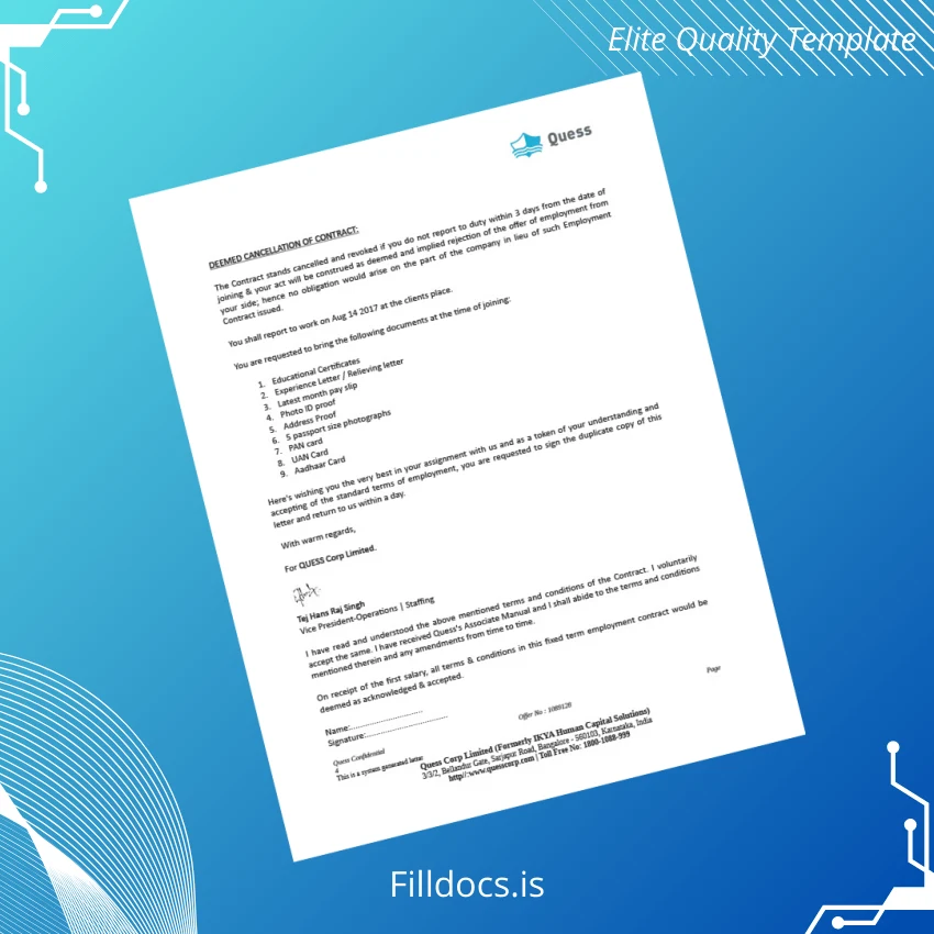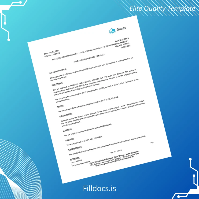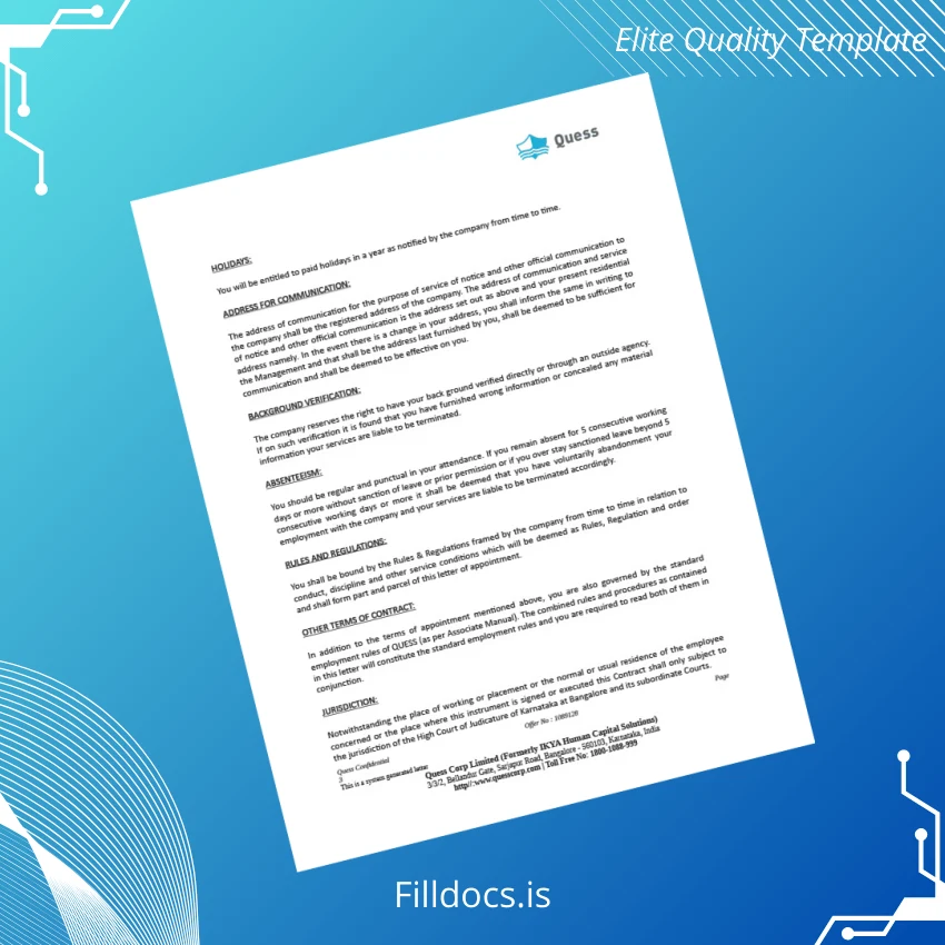 Fillable Quess Corp Limited Employment Verification Letter Template – Word/PDF 8 page