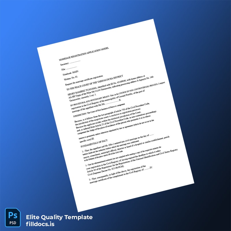 Say goodbye to time-consuming paperwork and hello to a stress-free registration process. Our Request for Registration of Marriage Certificate Template provides you with every feature you need to complete your documents professionally and swiftly. Download your fillable Word/PDF template now and experience the efficiency of a truly editable registration certificate that adapts to your unique situation.