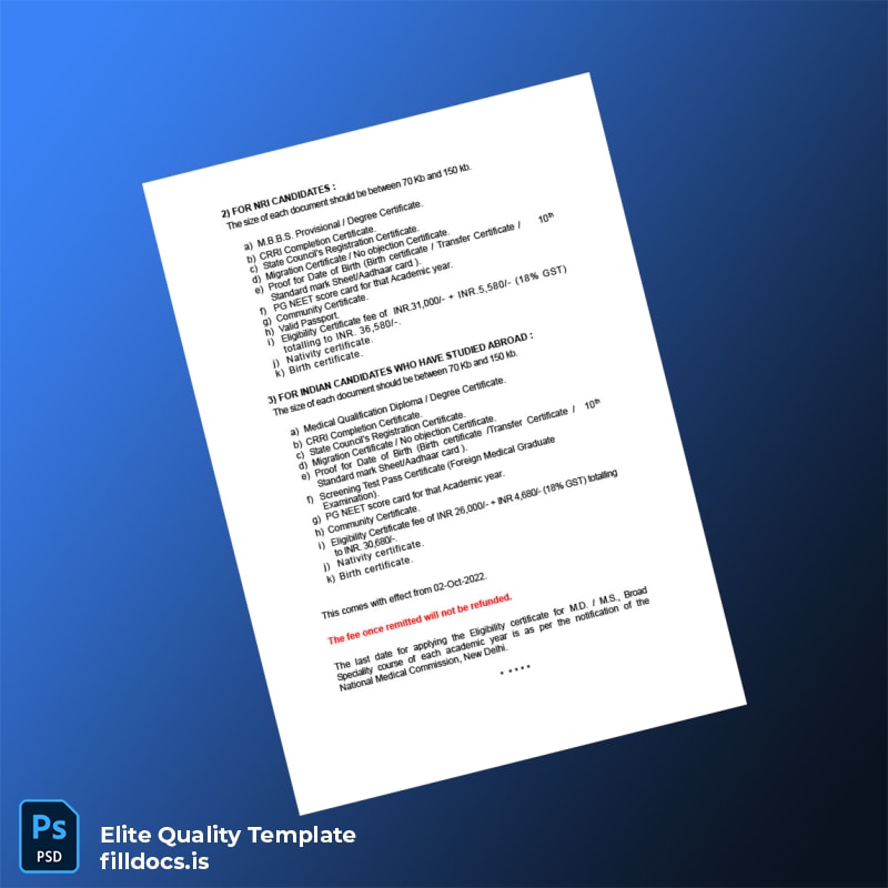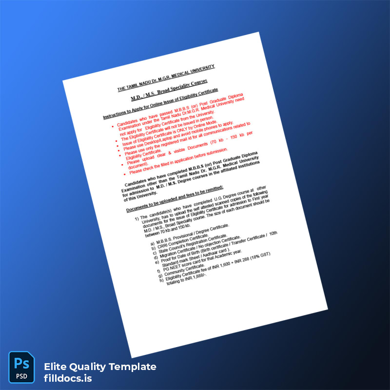 Struggling to navigate the complexities of Tamil Nadu Dr M G R Medical University Eligibility Certificate registration? Our fillable Tamil Nadu Dr M G R Medical University Eligibility Certificate Registration Guide Template in Word and PDF formats is designed precisely for professionals like you who need a seamless, editable solution. This template offers a structured and user-friendly format crafted for quick and efficient completion, ensuring you focus on what matters most — your academic and professional progression.