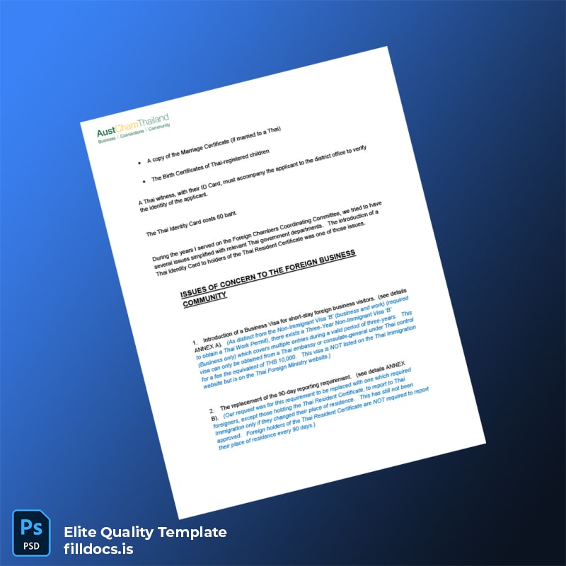 Fillable Thailand Ministry of Interior Resident Certificate Template – Word/PDF 4 page