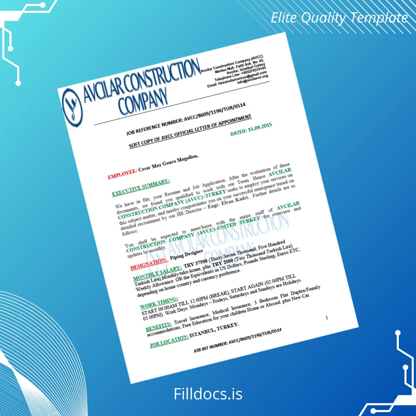 Effortlessly Verify Employment with Turkey Avcilar Construction Company Template