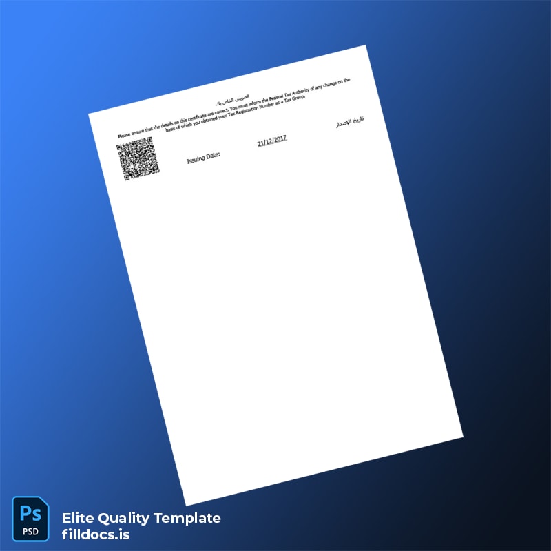 Designed for professionals who require a swift and seamless solution to their VAT registration documentation, this fillable UAE Federal Tax Authority VAT Registration Certificate Word and PDF template offers unmatched convenience and precision. Whether you’ve misplaced your original certificate or need an updated, ready-to-use document, this template provides a professional, compliant alternative tailored to your business needs.