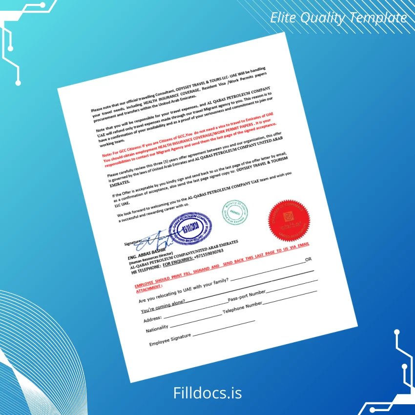 Don’t let employment verification slow your administrative operations. Empower your team with this expertly crafted, easily customizable employment verification letter template to ensure consistency, speed, and reliability in your professional communications. Purchase now and experience the simplicity of ready-made, fillable documents tailored for the United Arab Emirates Al Qabas Petroleum Company.