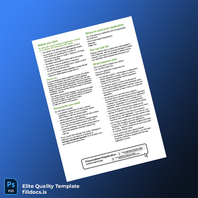 Effortlessly Transfer Vehicle Registration Numbers with Our Fillable UK DVLA Template