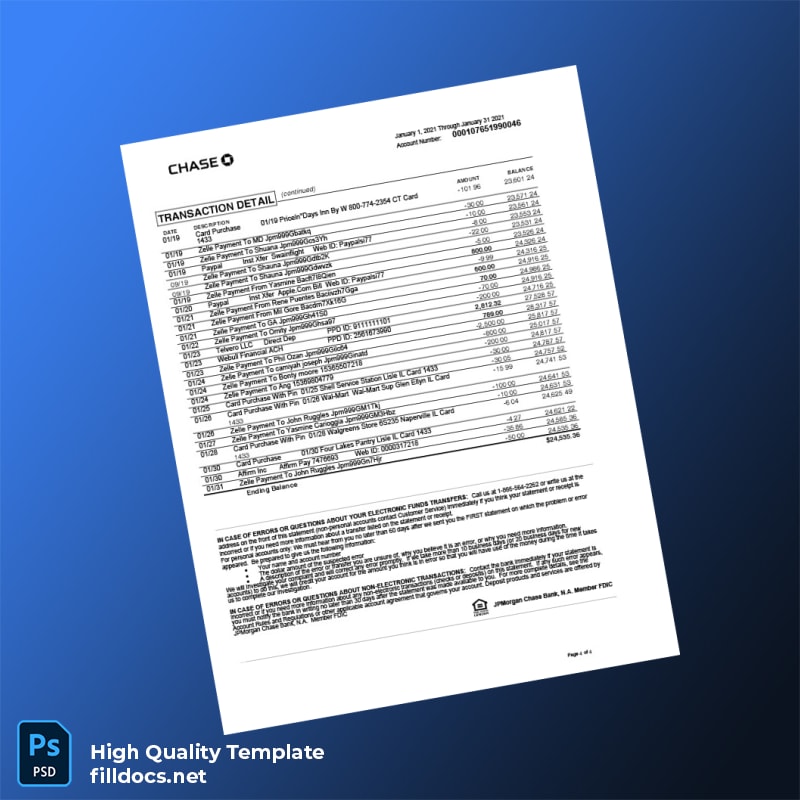 Professional scenarios can be unexpectedly challenging, whether due to lost documents or the need to provide transparent financial history quickly. With our France Chase Bank Statement Template, you can address these issues effectively, ensuring you always have a professional document ready to go.