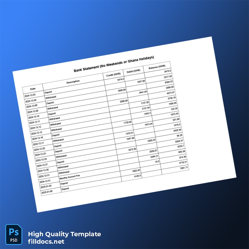 Don’t let the absence of a document stand in your way. Download our Ghana Bank Statement Template now and transform your challenge into an opportunity. Experience the ease of completing your tasks with confidence. Explore our complete range of products and related templates to further enhance your professional toolkit. For more information, visit bank statement template options here!