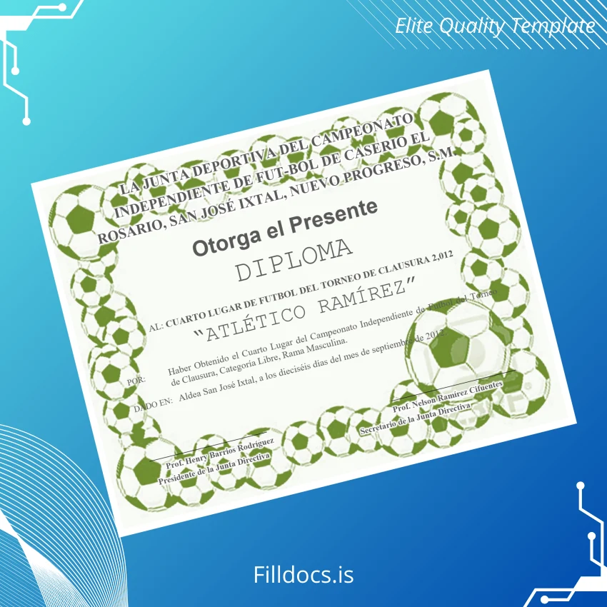 Discover the Guatemala Atlético Ramírez Diploma Template – Word/PDF, a professional and customizable digital document designed for individuals seeking a versatile solution for diploma and certificate creation. Ideal for those needing a streamlined and editable format, this template simplifies the process of producing high-quality diplomas with precision and ease.