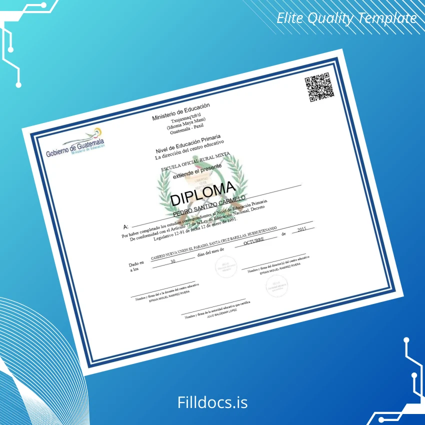 This Guatemala Instituto diploma template addresses common challenges of diploma loss or damage by offering a quick, reliable, and fully editable replacement option. Professionals, educational institutions, and administrative staff benefit from the simplicity of updating essential document details without the need for specialized graphic design software. This versatile template balances authenticity with customization, providing a trusted digital diploma download suitable for a variety of academic and formal uses.