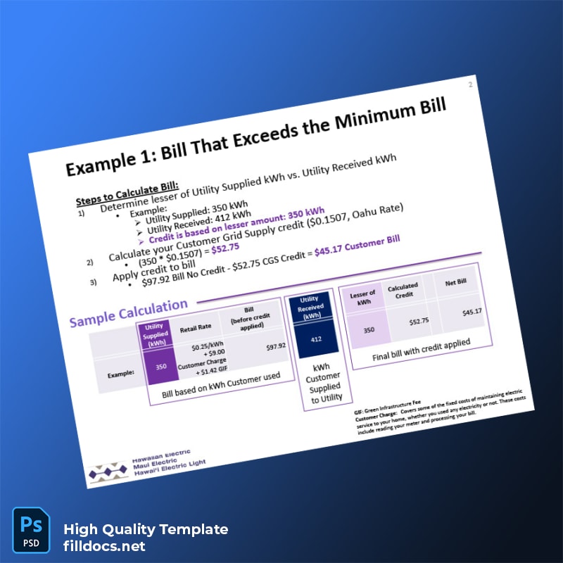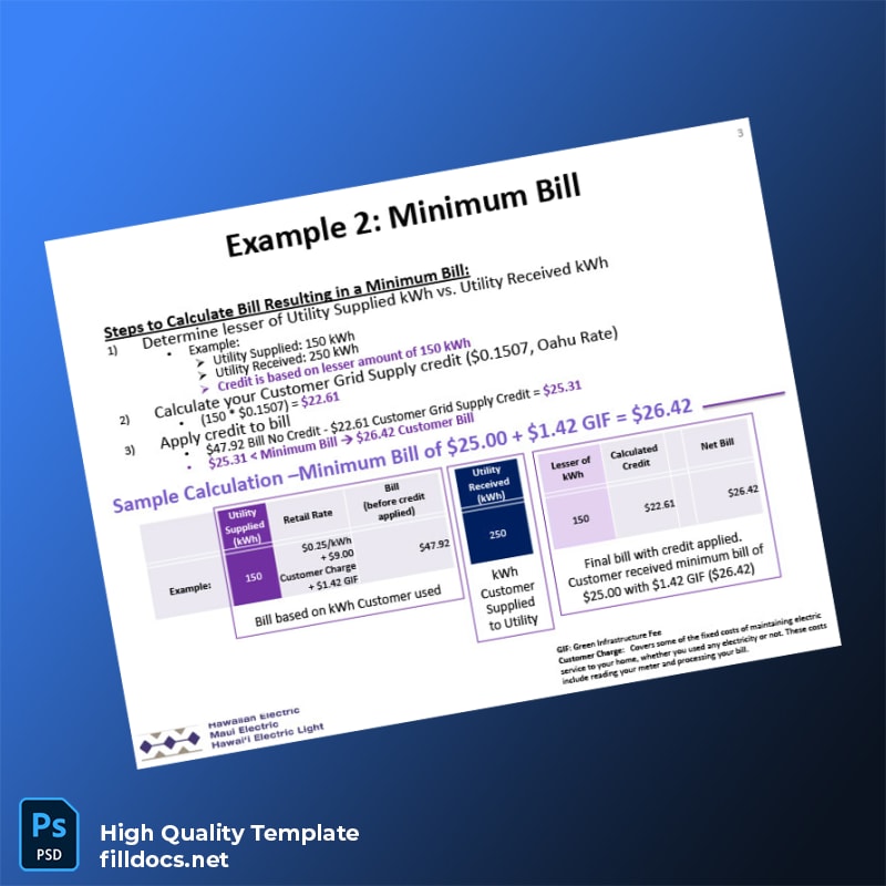 Hawaiian Electric Editable Utility Bill Template in Word and PDF formats 3 page