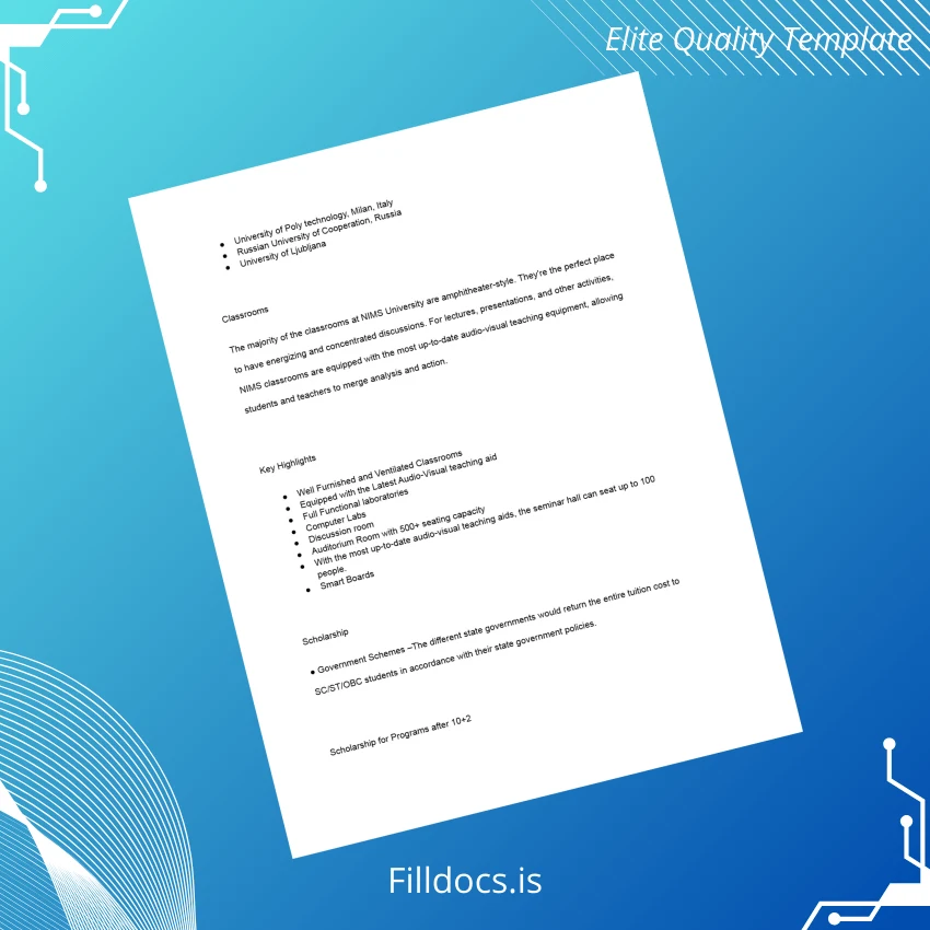 Be the first to review “High-Quality India NIMS University Post Graduate Diploma Template – Word & PDF 8 Page”