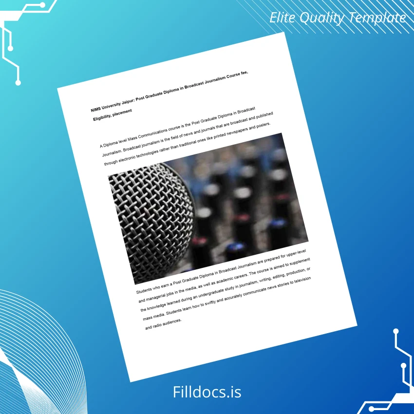 Fillable India NIMS University Post Graduate Diploma in Broadcast Journalism Template – Word/PDF. Easily customize and print your professional diploma with editable fields.