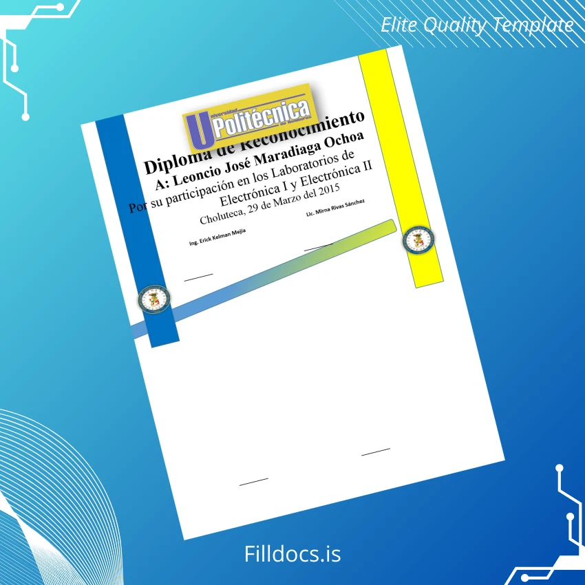 Discover the Honduras Universidad de Choluteca Diploma in Electronics Template – Word/PDF, an expertly designed, fillable diploma certificate tailored for professionals seeking a seamless, customizable solution to create or replace their academic credentials. This versatile template enables users to easily edit all essential fields within Microsoft Word or PDF formats, providing unmatched convenience for fast, professional results.