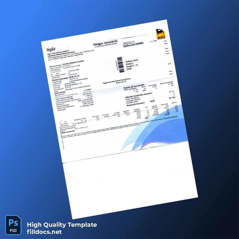 Lost your original utility bill or need a fast replacement? Imagine a busy professional struggling to provide a valid utility bill for verification purposes, worried about delays. With the utility bill template category at your fingertips, they can instantly customize this Hungary TIG Z Zrt Editable Utility Bill Template to fulfill their requirements accurately without compromising legitimacy or detail, simplifying compliance and verification processes.