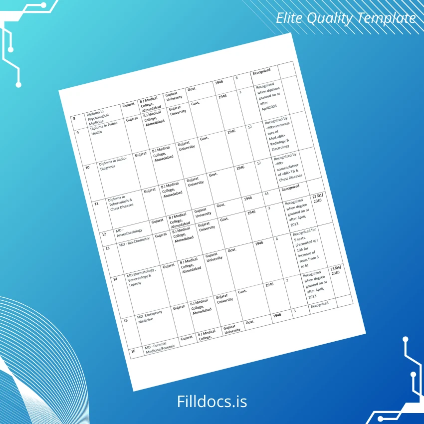 This template is a digital version of the prestigious India B.J. Medical College MD MS Diploma, available in both Word and PDF formats. It serves as a customizable degree template that allows users to input personalized details into ready-made fields, providing a seamless experience for recreating or replacing academic credentials.