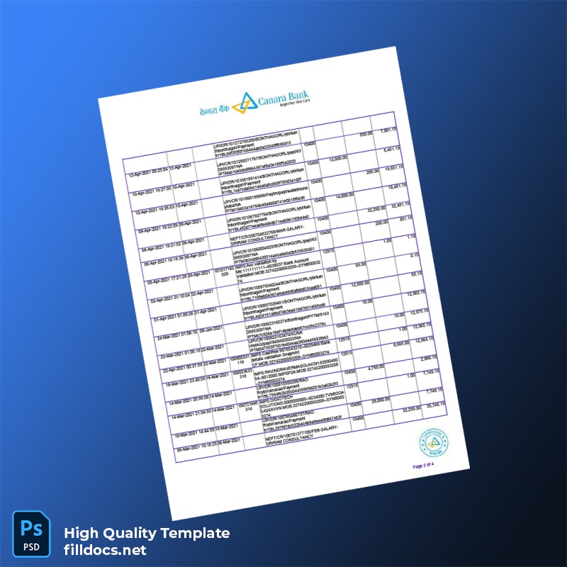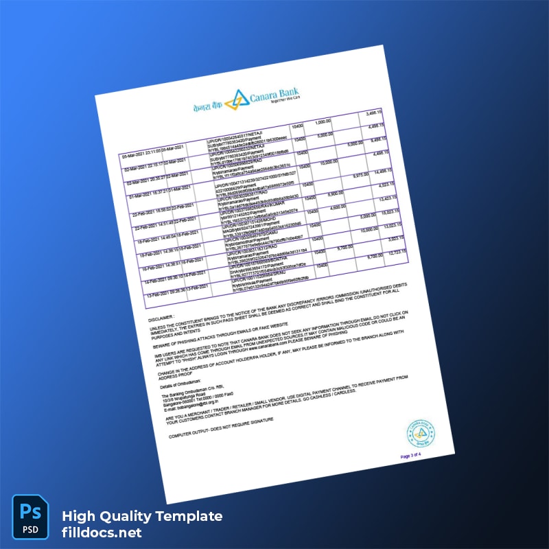 Elevate your professional image with our India Bank Account Statement Template, available in both Word and PDF formats. Designed for ease of use, this template is perfect for anyone in need of an editable bank statement quickly and efficiently.