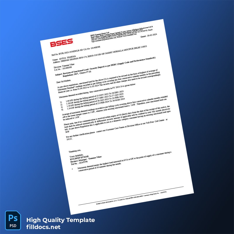 Looking for a reliable and professional utility bill proof of address template that you can customize instantly? The India BSES Yamuna Power Ltd Editable Utility Bill Template offers a seamless solution for individuals and businesses who need an accurate, editable utility bill for verification, documentation, or administrative purposes. Available in both Word and PDF formats, this template simplifies the process of generating authentic utility bills that meet official standards.