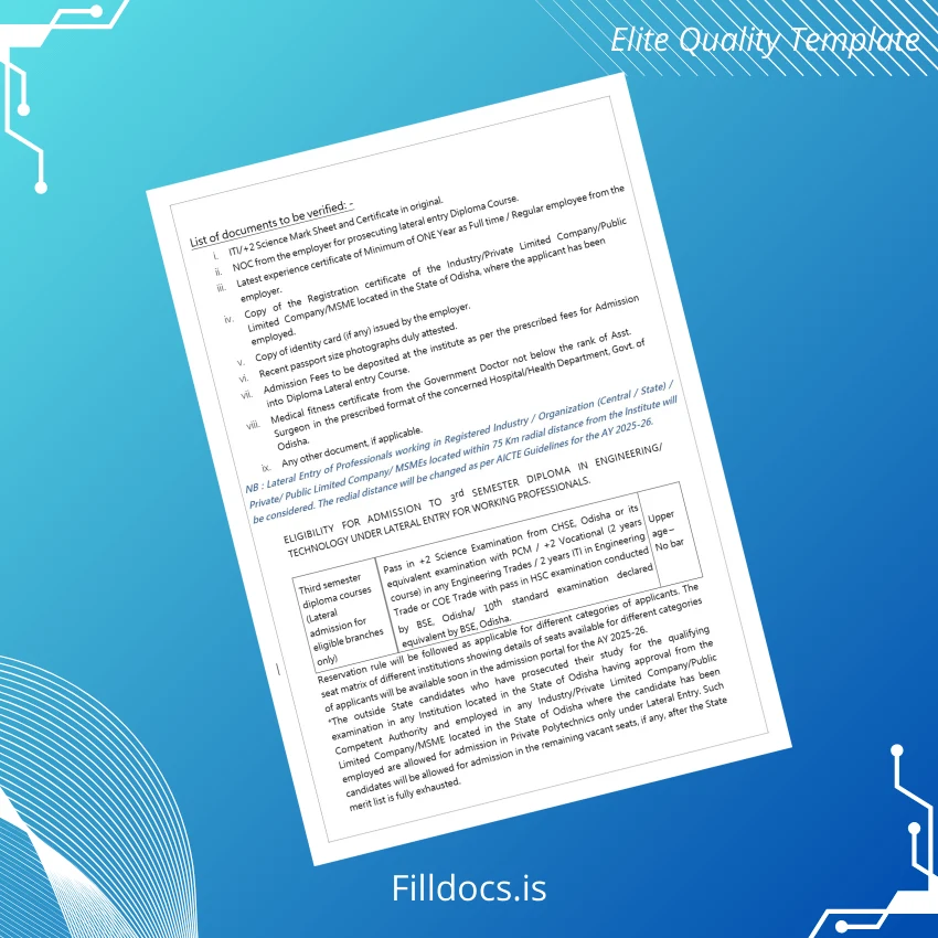 - Design: Authentic and compliant diploma styling for Odisha’s technical education certificates