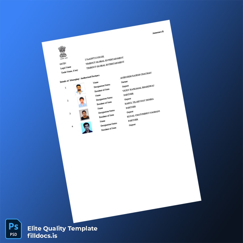 India Government GST Registration Certificate Template – Word/PDF 3 page