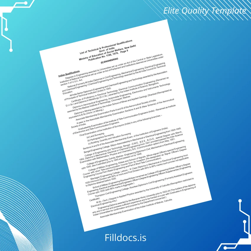 This India Government of India Ministry of Education Degree Diploma Equivalent Template – Word/PDF is a professional, fillable document designed to meet official standards for academic recognition. It provides users with a versatile and customizable solution suitable for creating replacement diplomas or novelty certificates quickly and accurately. This template serves individuals needing instant access to a high-quality diploma format compatible with widely used office software.