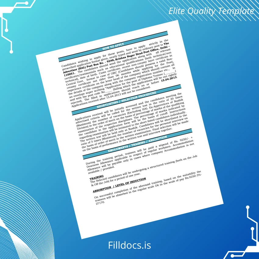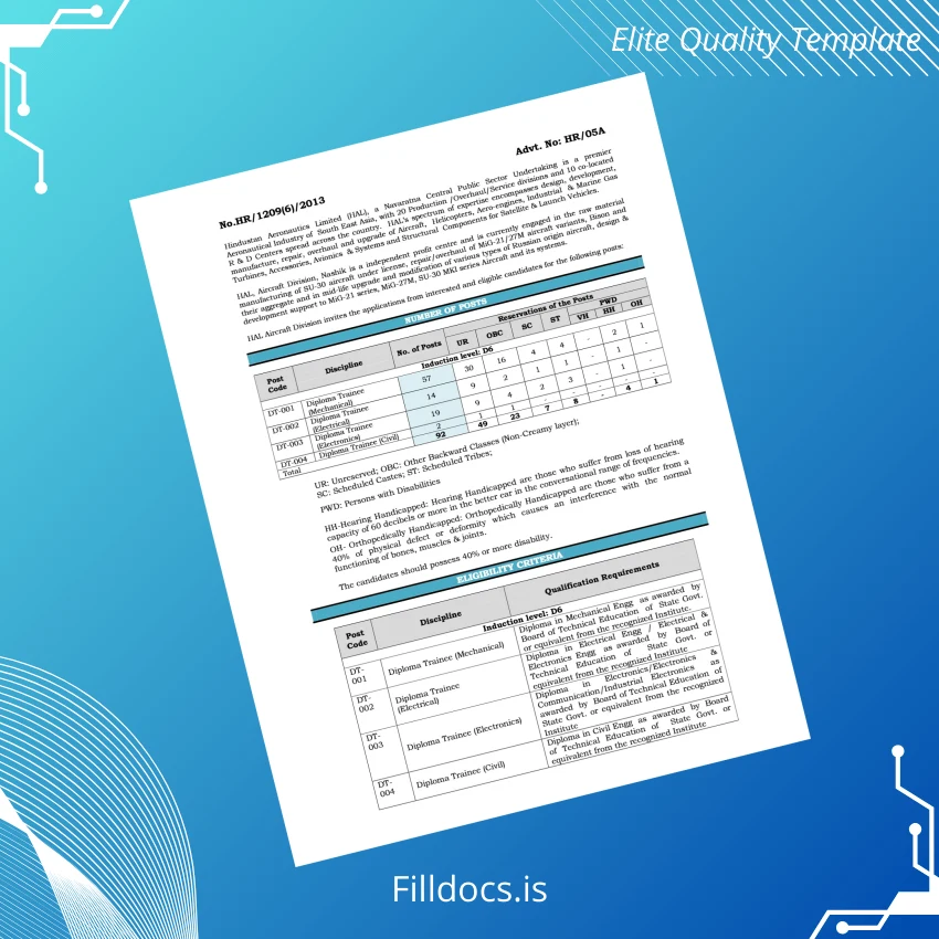 The India Hindustan Aeronautics Limited Diploma Trainee Certificate Template – Word/PDF is a high-quality, fillable document designed specifically for professionals needing an editable and customizable certificate format. Perfect for those seeking a professional replacement or an easily modifiable record, this digital diploma template ensures a seamless experience for users worldwide.