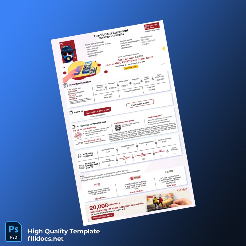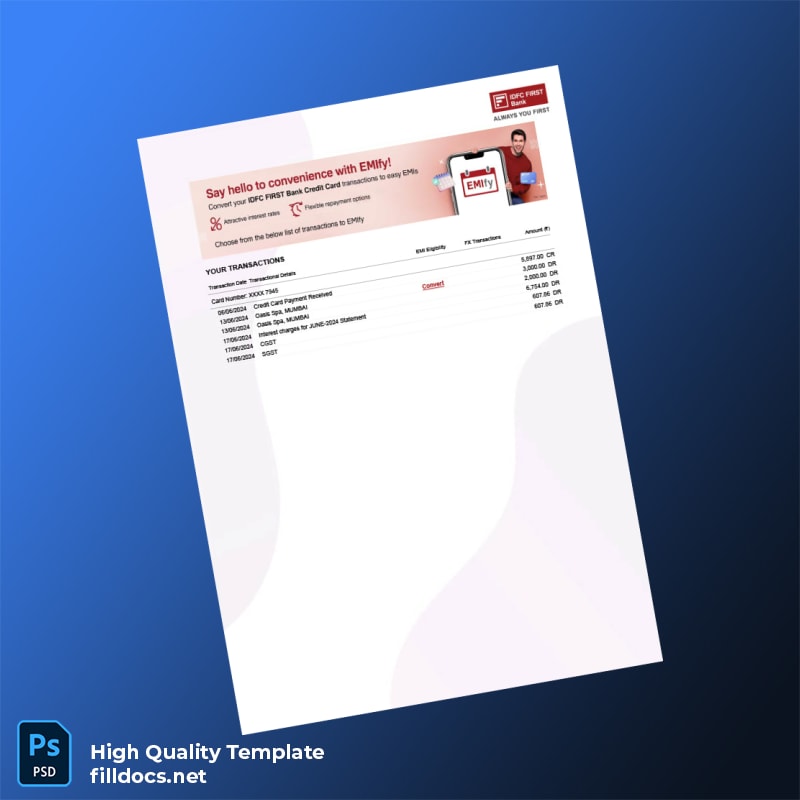India IDFC FIRST Bank Editable Bank Statement Template | Word & PDF Formats