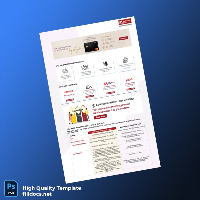 Effortlessly create a professional bank statement tailored to your needs with the India IDFC FIRST Bank Editable Bank Statement Template, available in both Word and PDF formats. This versatile template streamlines document preparation for utility bill proof of address verification, helping professionals handle urgent requirements with confidence.