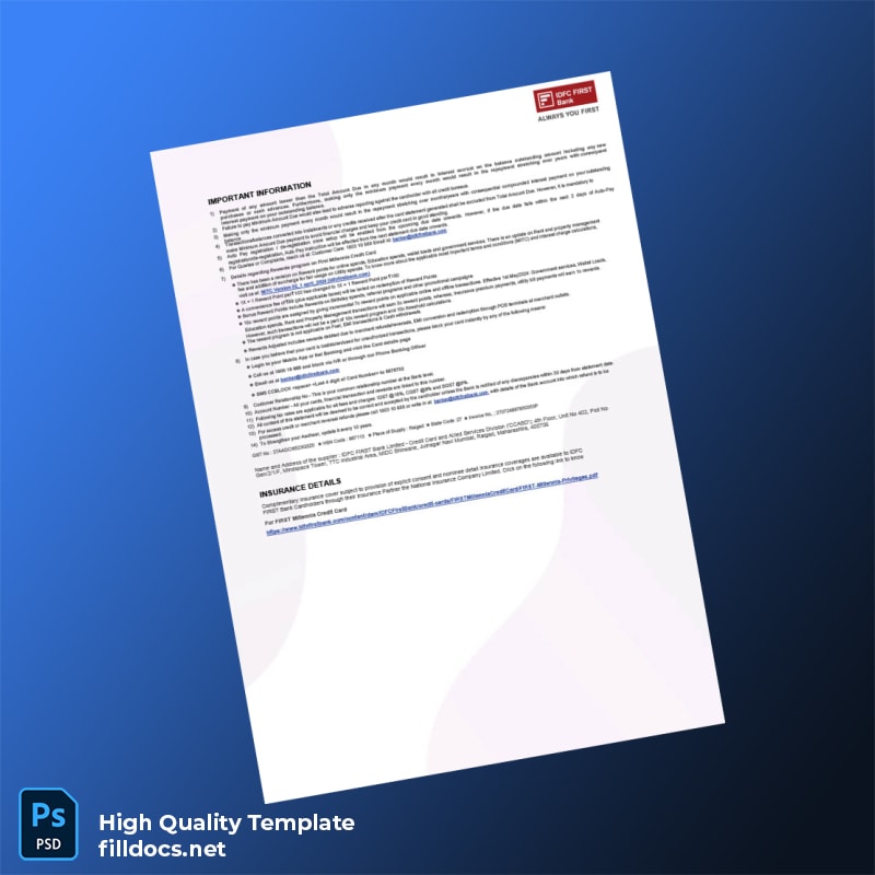 Be the first to review “India IDFC FIRST Bank Editable Bank Statement Template in Word and PDF formats 6 page”