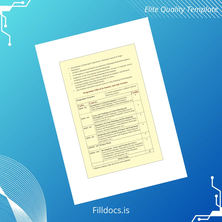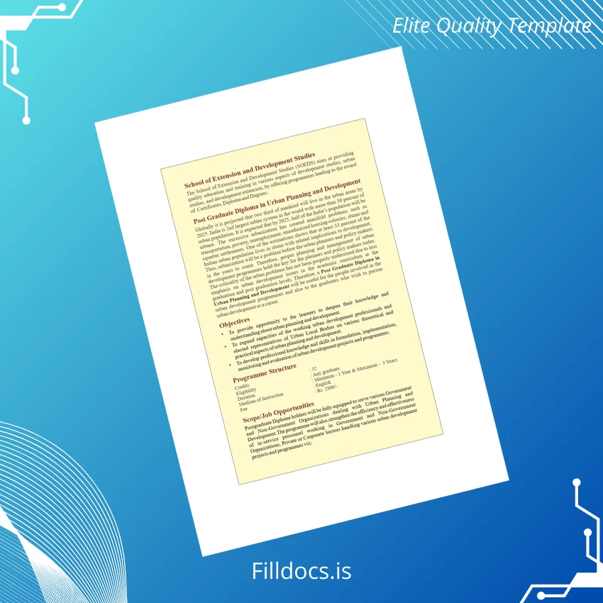 This India Indira Gandhi National Open University PG Diploma in Urban Planning and Development Template – Word/PDF offers a professional, editable, and print-ready solution for those seeking a customizable diploma design. It is perfect for professionals needing a digital diploma download that allows quick and easy customization. Whether you need it to replace a lost certificate or want a pristine, blank diploma form, this fillable template caters to your needs efficiently.