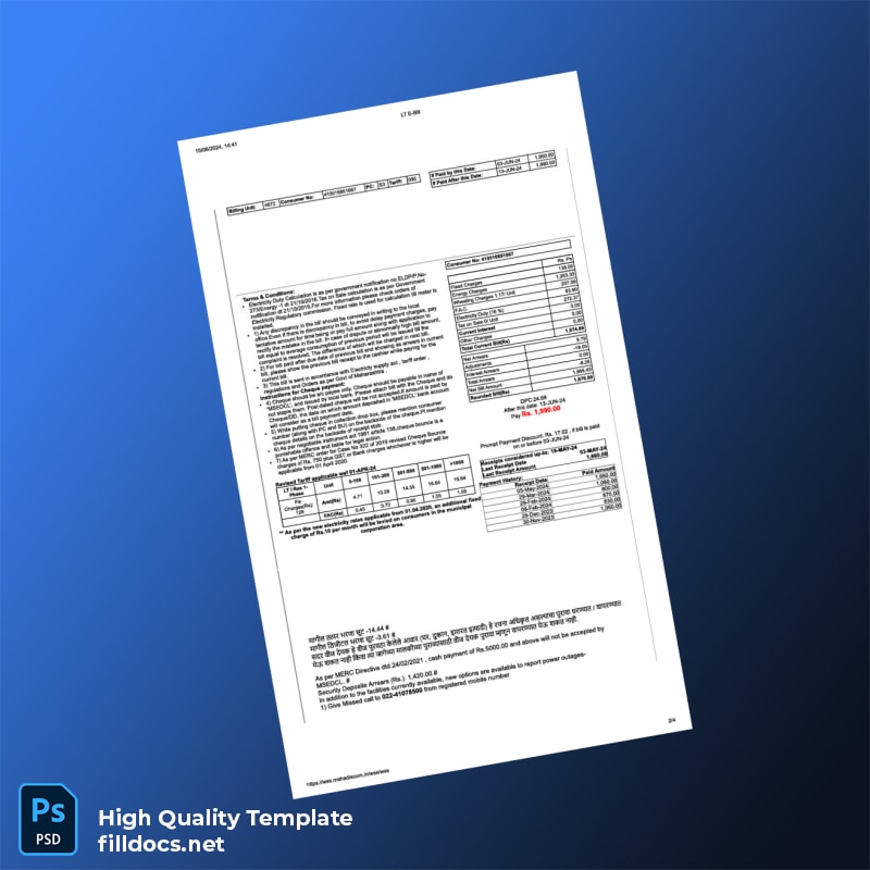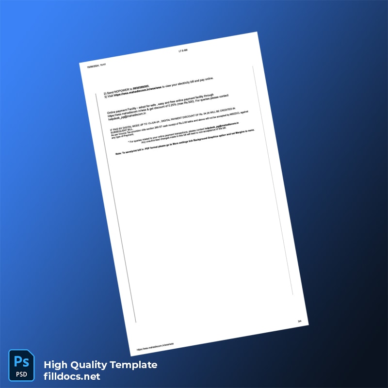 Streamline your document management with the India Maharashtra State Electricity Distribution Co Ltd Editable Utility Bill Template, available in both Word and PDF formats. Designed specifically for professionals who need a reliable utility bill proof of address template, this editable template ensures accuracy, convenience, and compliance for personal or official use.