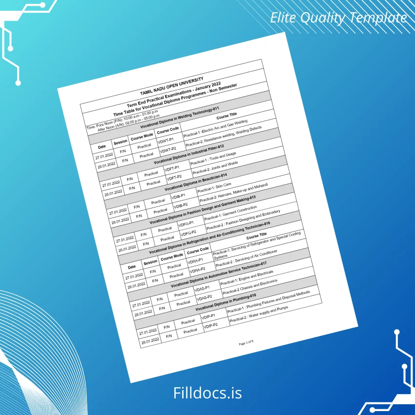 India Tamil Nadu Open University Vocational Diploma Template – High Quality Word & PDF 5 Page