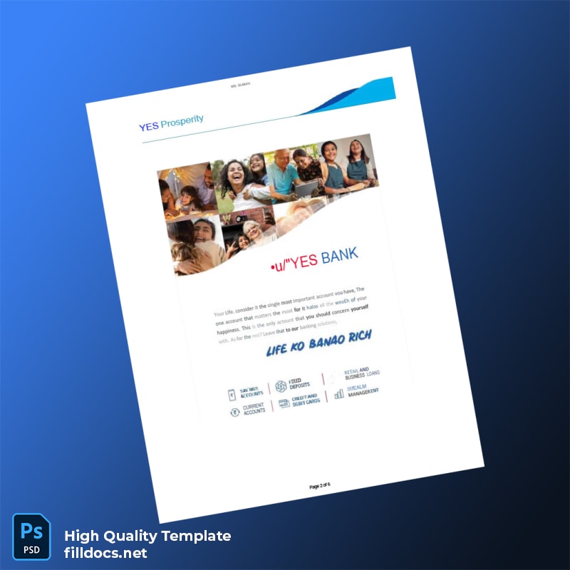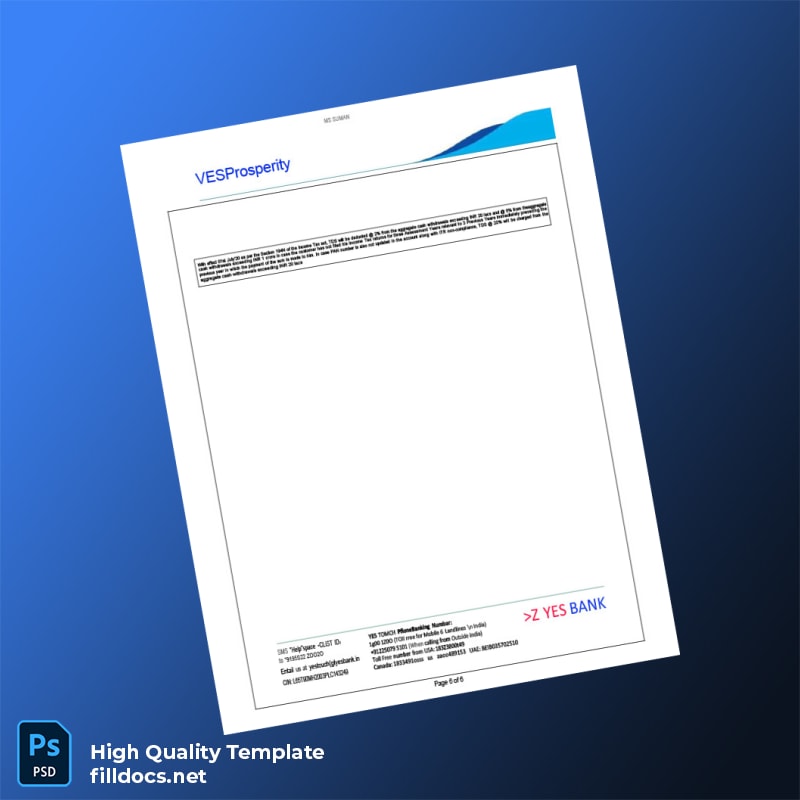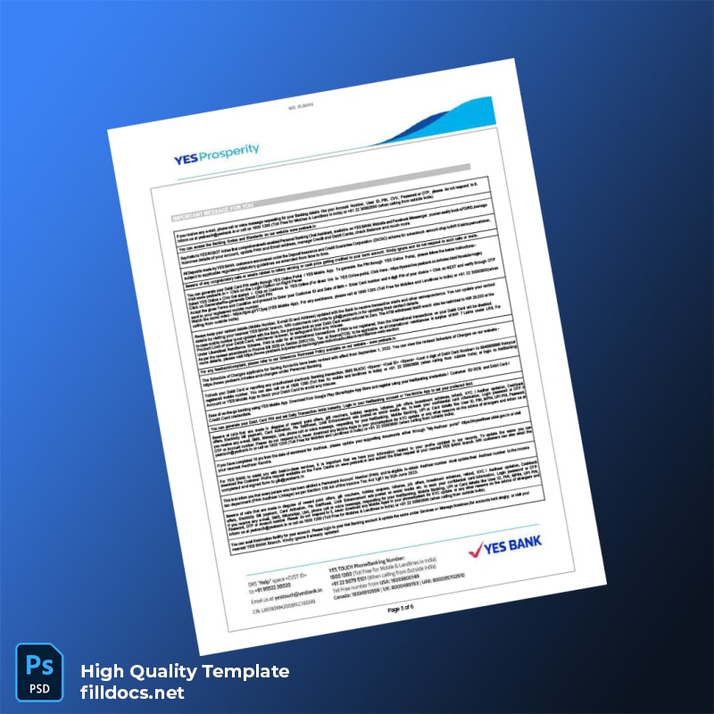 India YES Bank Statement Template in Word and PDF formats 6 page