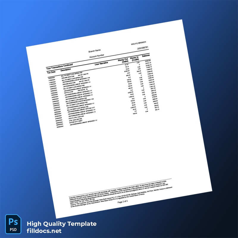 Don’t let lost financial documents jeopardize your professional commitments. Invest in the Kenya Absa Bank Statement Template today and ensure you’re always prepared. For additional options, check our related products to enhance your document capabilities.