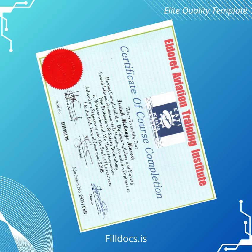 Kenya Indore Aviation Training Diploma Template Fire Protection – Word & PDF High-Resolution